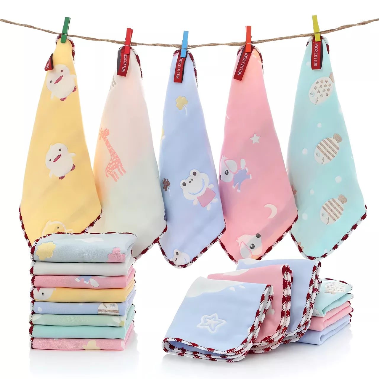 Give your baby the comfort they deserve with our Baby Towels made from 100% pure cotton. These muslin squares are perfect for newborns and young children, providing a soft and breathable texture that is gentle on sensitive skin. Whether you’re using them for bath time, feeding, or as a quick wipe for messy moments, these towels are designed to be lightweight, highly absorbent, and easy to clean. Each set comes in a mix of vibrant colors and adorable patterns that both parents and babies will love.