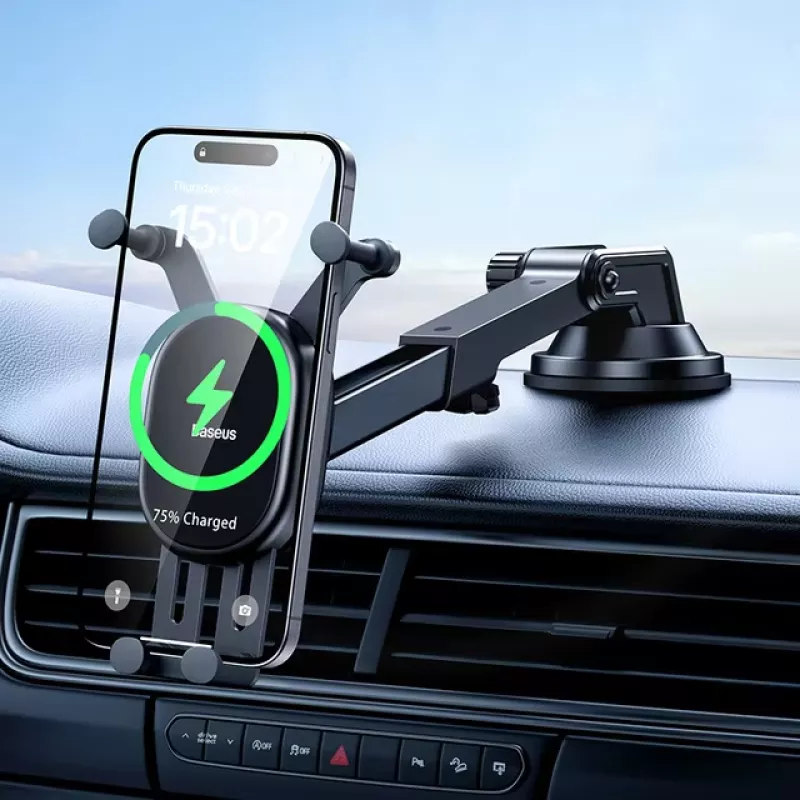 This wireless charger and phone holder is ideal for everyday driving, long road trips, or any time you need to keep your phone charged while staying hands-free. Whether you’re using GPS for navigation or taking calls safely with Bluetooth, this device ensures your phone is always within reach and fully charged.