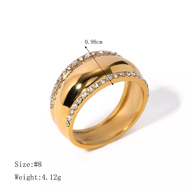 Our Minimalist 18k Gold Plated Stainless Steel Ring combines the beauty of classic design with modern durability. The smooth finish and delicate rhinestone inlay create a sophisticated look that stands out subtly but effectively. Whether you’re dressing up for a special occasion or adding a touch of elegance to your everyday attire, this ring is a versatile choice that enhances any outfit.