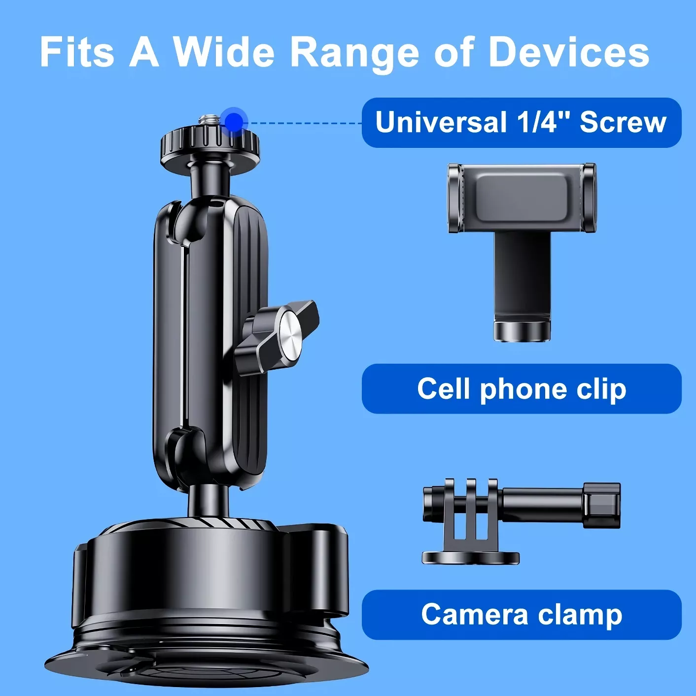2-in-1 Car Phone & Sports Camera Holder with Large Suction Cup