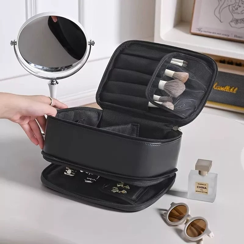 This 2-in-1 Makeup Brushes Organizer is perfect for anyone who wants to stay organized while traveling. Its smart design and durable materials make it a reliable choice for keeping your beauty essentials and jewelry in one place. Whether for a short trip or a long journey, this organizer ensures you have everything you need at your fingertips.