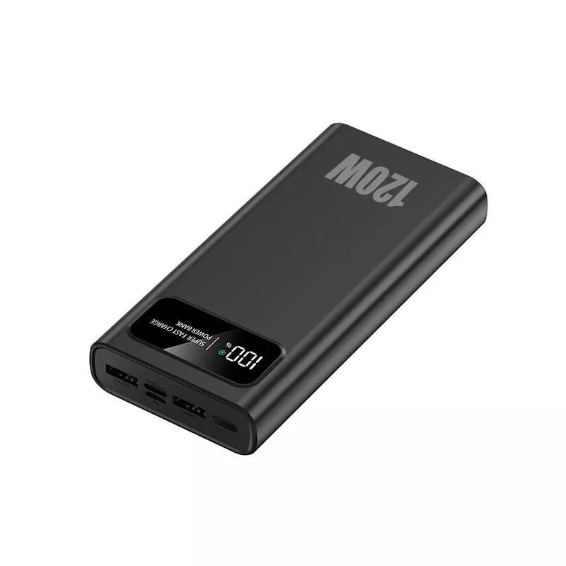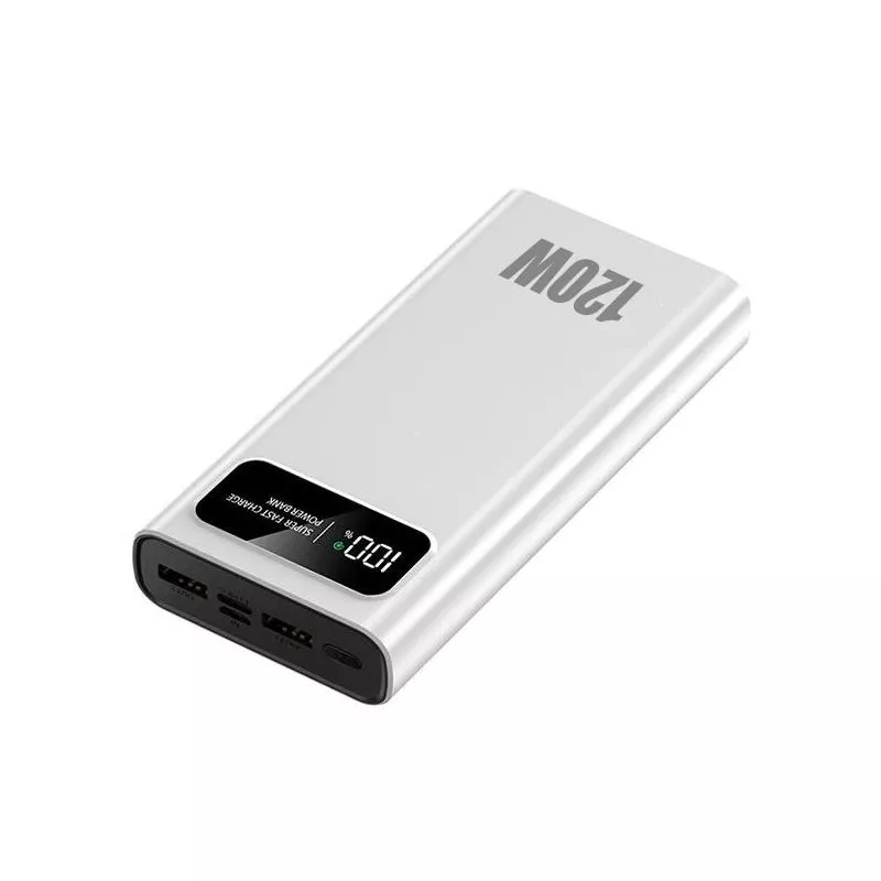 This power bank stands out with its 120W super fast charging capability, allowing you to power up your devices faster than ever. It supports two-way quick charge, so not only can you charge your devices rapidly, but the power bank itself also charges quickly. Equipped with multiple output interfaces (USB-A, USB-Type C, Micro USB, and even Lightning), it’s compatible with a wide range of devices, including iPhones, Samsung, Huawei, and more. With three charging interfaces, you can charge multiple devices at the same time—perfect for those with several gadgets.