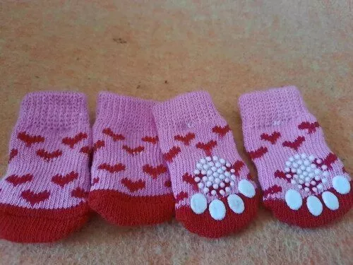 My senior dog has been struggling with mobility on tile and wood floors lately. These socks have made it easier for her to move around, although she's not too fond of wearing something unfamiliar. They're straightforward to put on and remain in place for a good amount of time. I'd recommend them for indoor use. They're made of quality materials, and the vet said they're safe to use on all four paws. While my dog initially dislikes them, it's amusing to watch her try to adapt. They're of excellent quality and provide better traction for her in the kitchen. I mostly bought them for entertainment, but they do serve their purpose well as dog socks and are a great value.