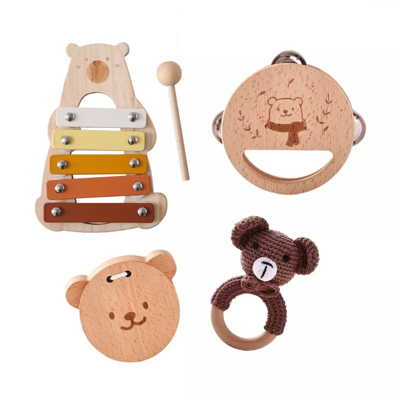 • 5-piece set: Includes a variety of music-making toys such as rattles, bells, and a bear-themed sound rattle.