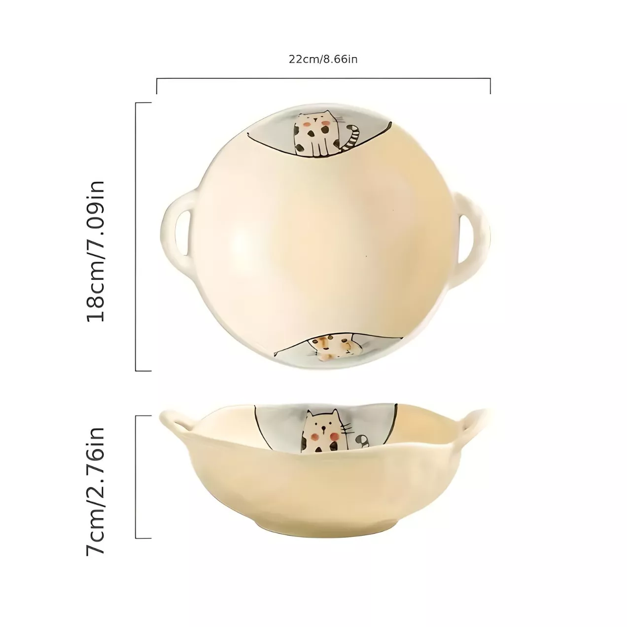 Bring a touch of charm to your kitchen with this 7.5-inch Cat Design Ceramic Soup Bowl with Handle. Perfect for serving soups, salads, noodles, pasta, and more, this bowl combines style, convenience, and versatility. Featuring a delightful cat pattern, it adds personality to your tableware collection while its practical design ensures it’s a go-to for all your favorite dishes. Whether you’re cozying up with a hot bowl of soup or enjoying a fresh salad, this bowl is ready to handle every meal with ease.