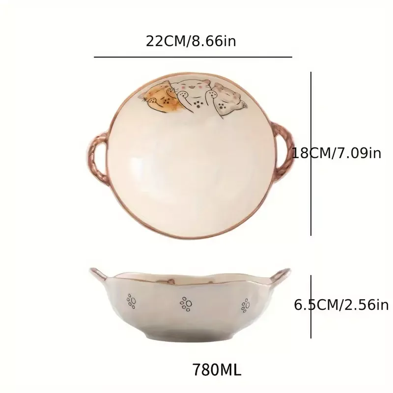 Not only does this bowl feature a charming cat design that brings fun to every meal, but it is also crafted from high-quality ceramic, making it both durable and eco-friendly. The 7.5-inch size is perfect for various meals, from a hearty bowl of ramen to a refreshing salad. The bowl’s handle makes it easy to transport hot dishes from the microwave or oven straight to the table, ensuring a hassle-free dining experience.