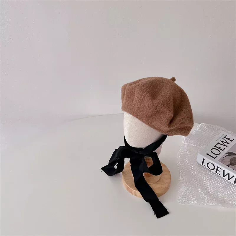 Adorable Kids Wool Beret Hat with Lace-Up Design