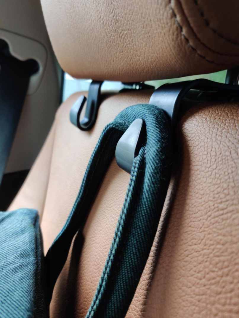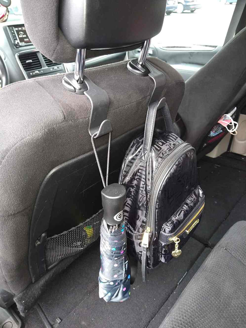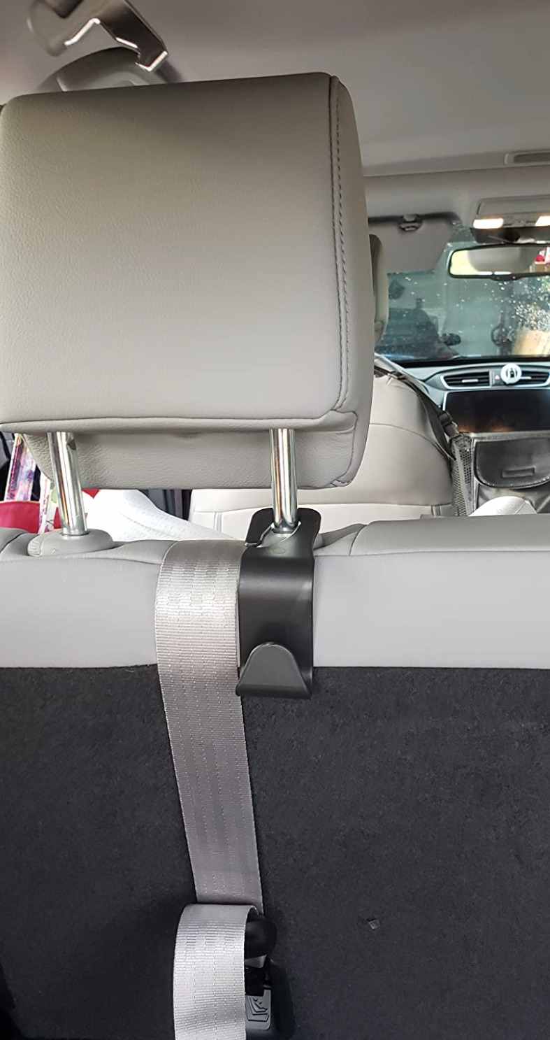 We previously had chrome hooks that hung much lower than these and would flip over to the other side of the seat where people would lean back on them and it hurt! These won't flip anywhere and they're perfect for hanging purses, grocery bags and anything else that will hang. Very sturdy and stay in place and you don't even notice them unless you need them! Definitely recommend!