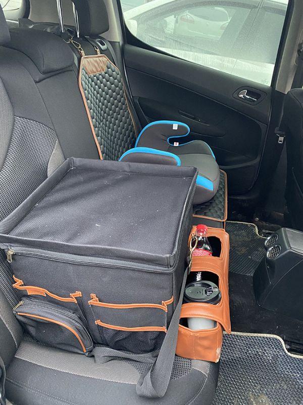 this car seat organizer is ideal for families with two children. we have twins and each now has toys, pens, gadgets, and other stuff on their side. on the lid they draw and play together. pockets on the front for both their drinks. it's a WOW, thanks a lot