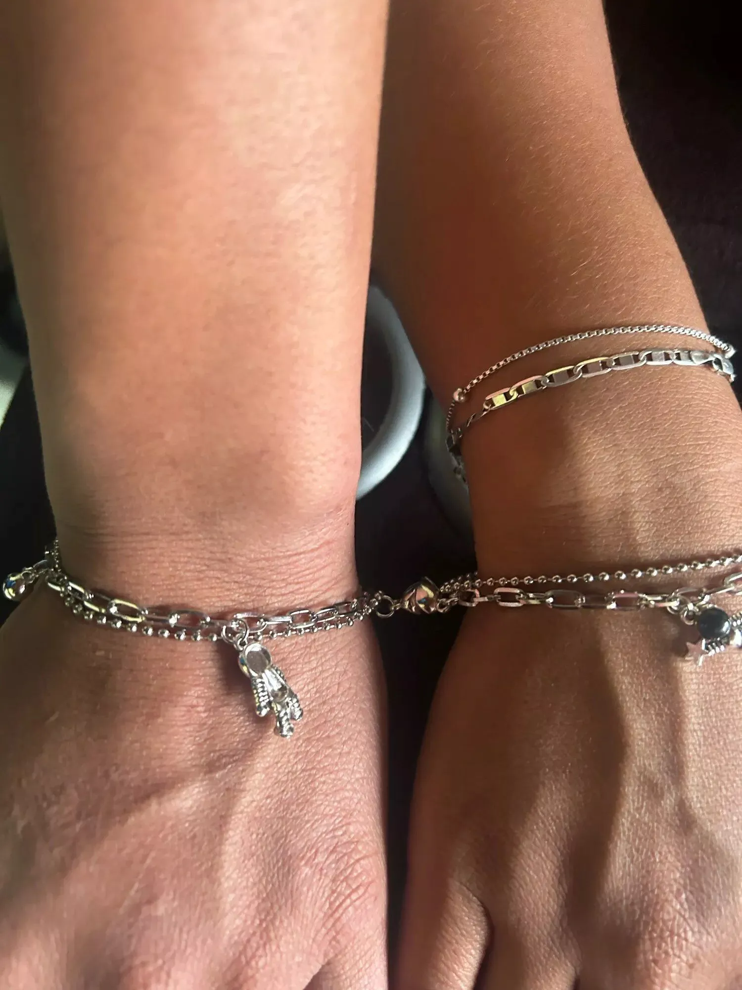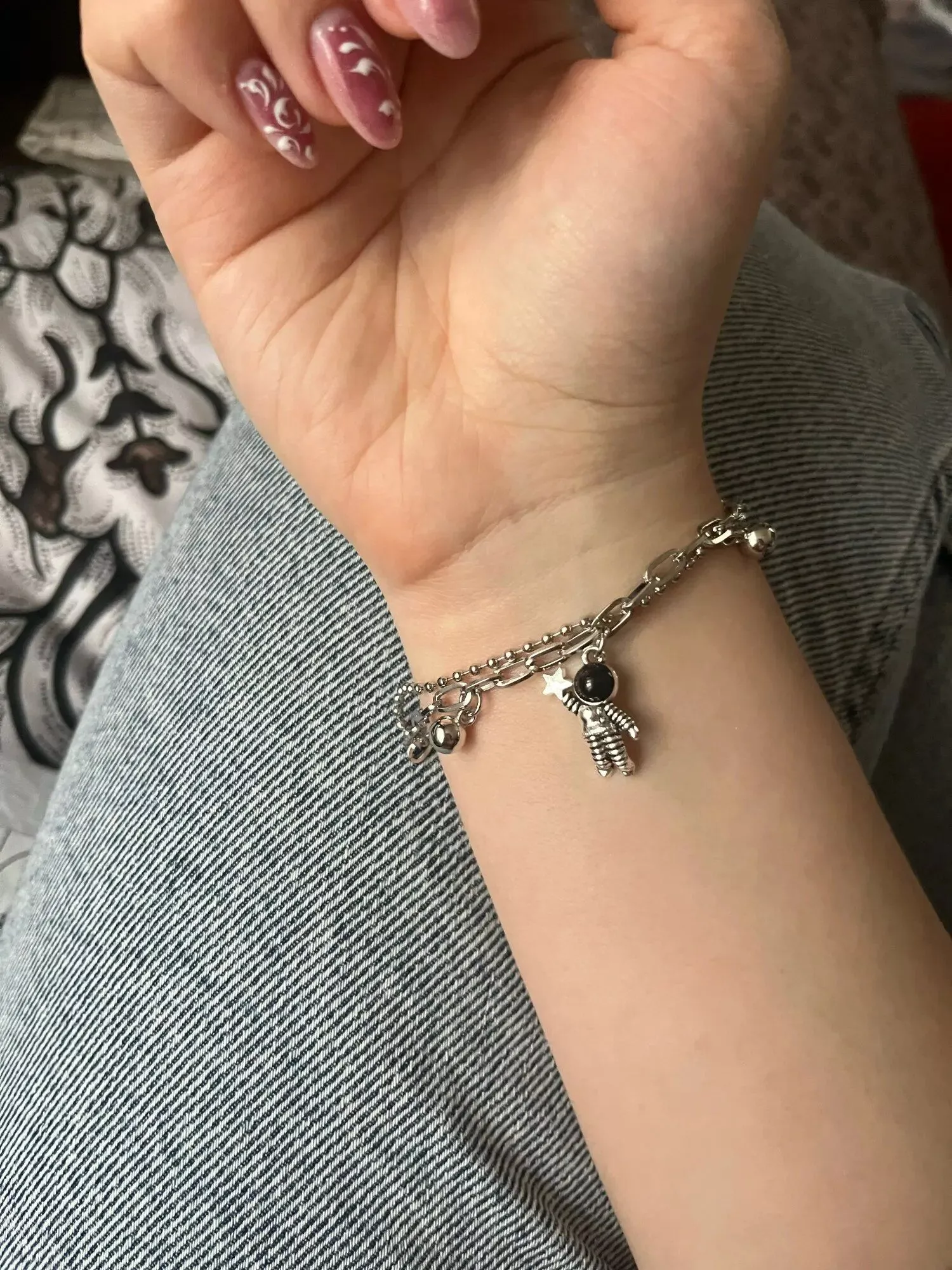 I adore this bracelet—it's a beautiful expression of both adventure and love; the astronaut charm symbolizes curiosity and exploration, while the heart charm adds a sweet and romantic touch. The double-layer design adds depth and dimension, making it a unique and eye-catching piece that I love to wear.