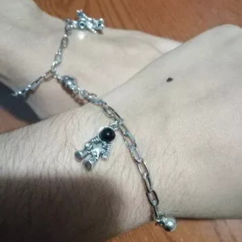 This bracelet is a delightful fusion of cosmic and romantic themes, making it a standout accessory in my collection; the astronaut charm symbolizes adventure and curiosity, while the heart charm adds a touch of sweetness and love. The double-layer design adds visual interest and depth, making it a versatile piece that can be styled in various ways.