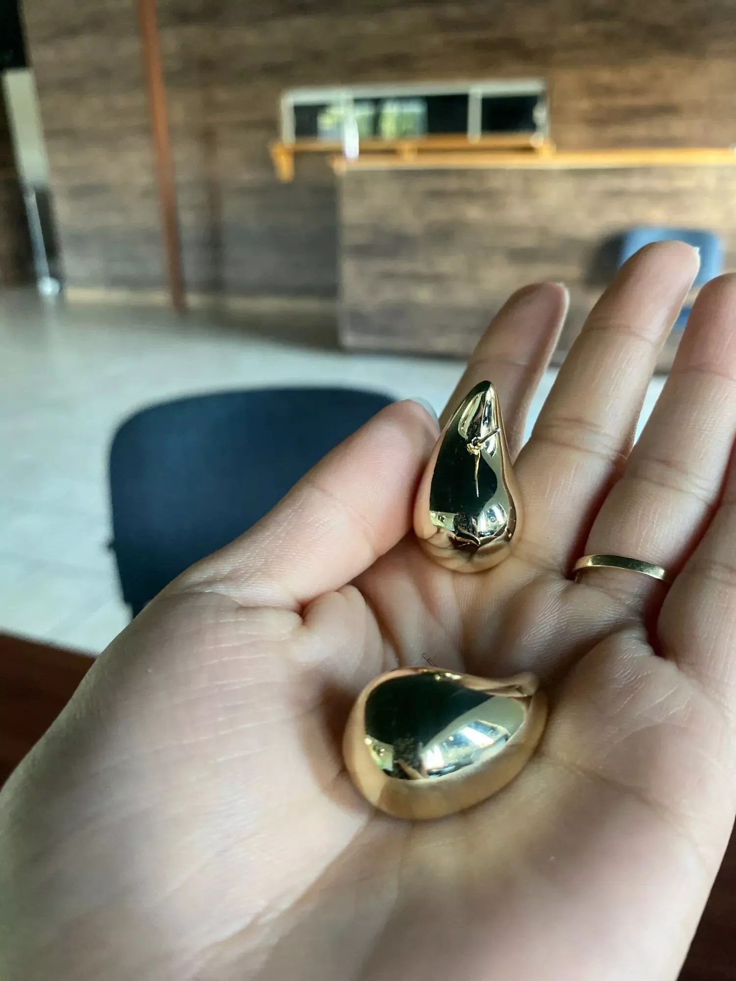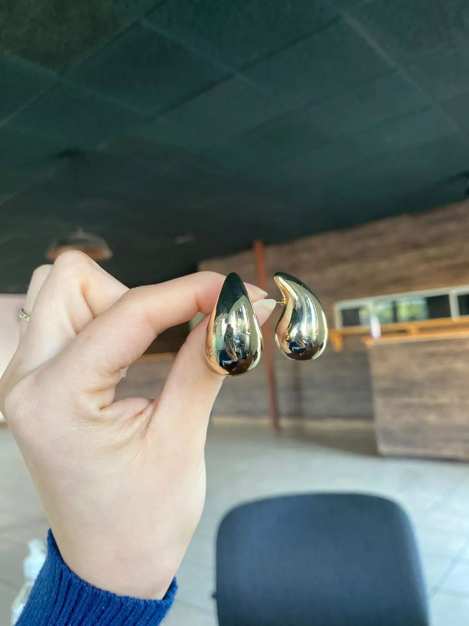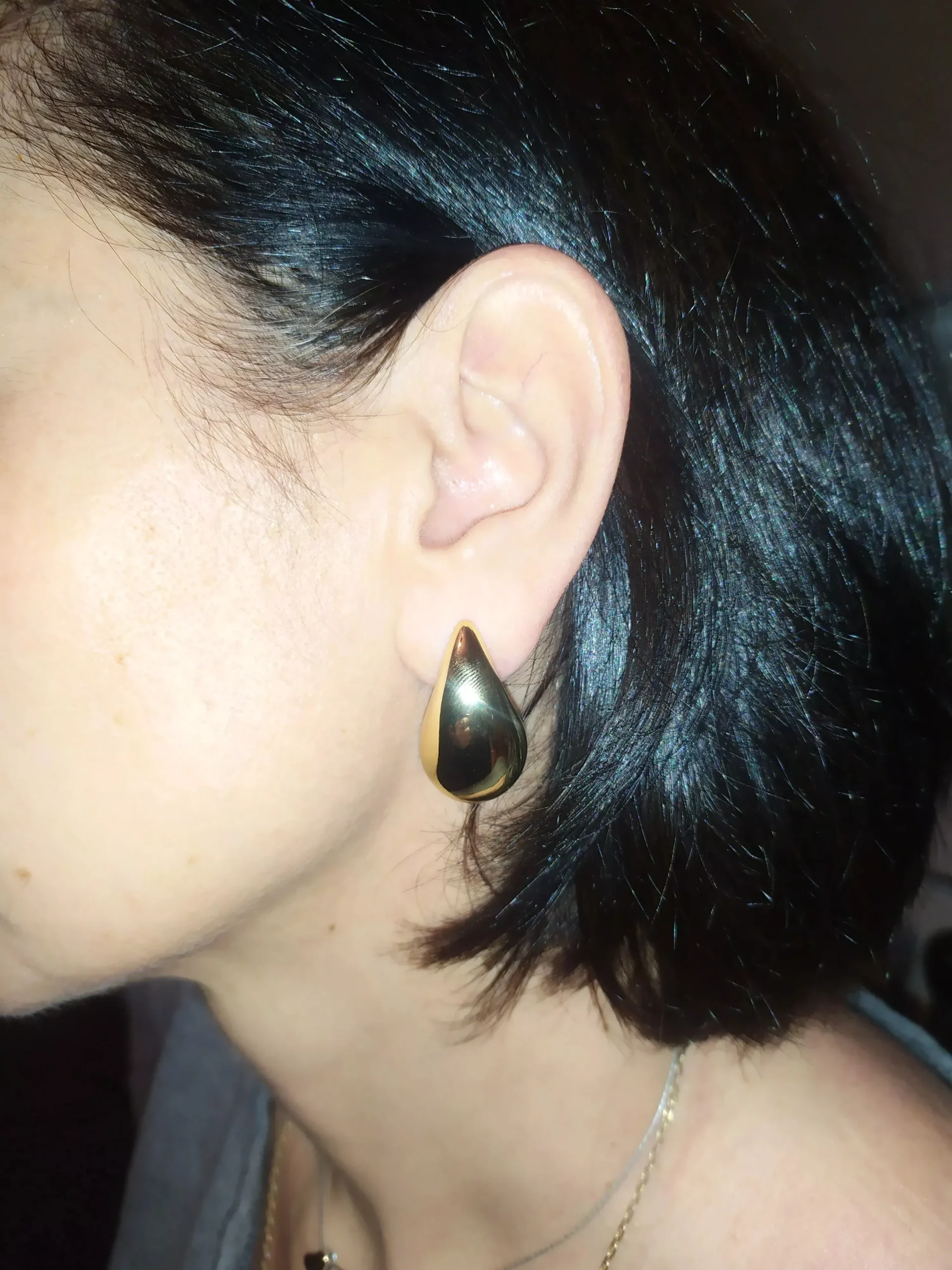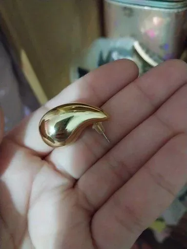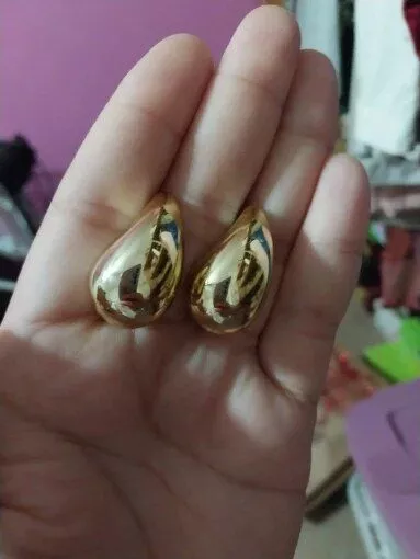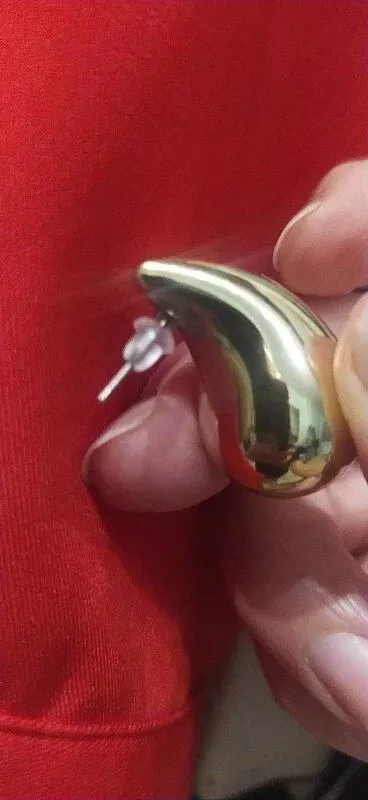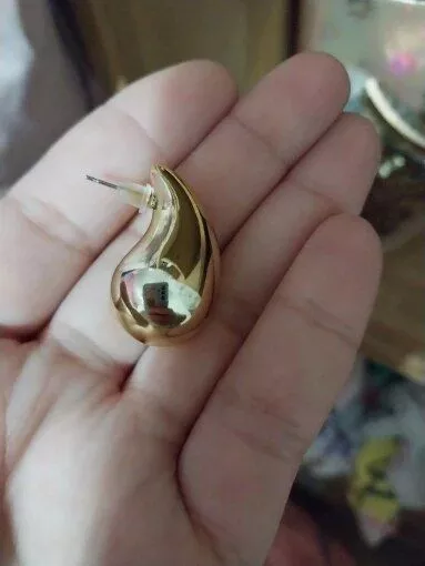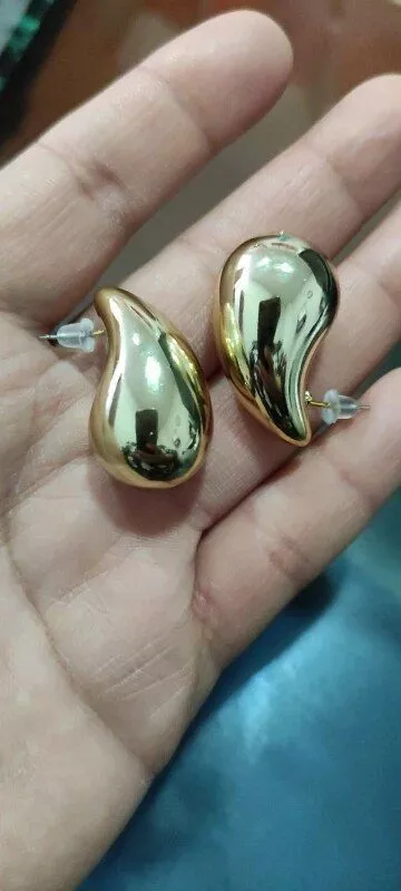 These gold teardrop earrings are the ultimate imitations! They have a substantial weight that lends them an authentic feel. Once securely fastened, they stay in place without much movement. These earrings are both stunning and lightweight, garnering many compliments and inquiries from friends who couldn't find them in stores—I highly recommend them!