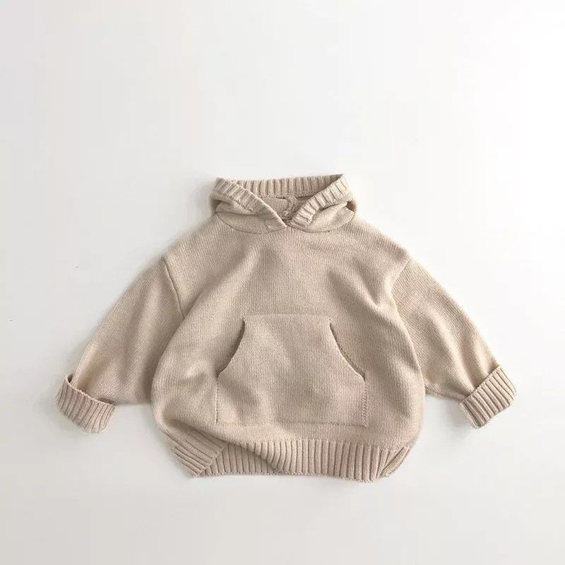 This sweater hoodie is the ideal choice for autumn, offering the right amount of warmth without being too bulky. It’s perfect for outdoor adventures, trips to the park, or cozying up indoors. The loose fit ensures your little one can move freely, whether they’re playing or napping. With its versatile design, this knitwear can be worn during any casual occasion and easily layered with other clothes during colder days.