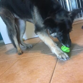 Its durable, strong, and keeps pups busy. If your dog loves tennis balls they will love this ball too!