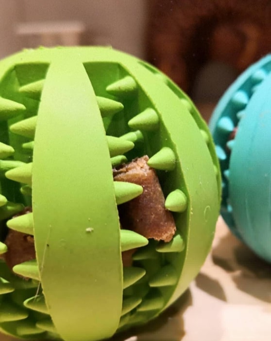 This toy is amazing. Even my elder Maltese LOVES this. She normally has to do a trick to get a treat, she's loving the treats buried deep within these toys. She even took the ball to her bed to play with, even there were no treats.
