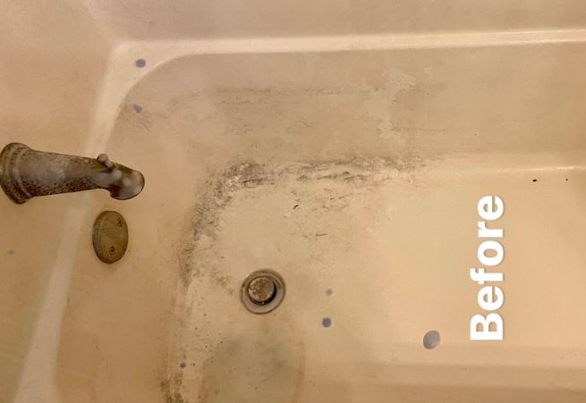 This product works great! It cleaned my super old tub that has lost most of its finish. This was even cleaned just using Mr. Clean. Not even specialized soap scum/mildew cleaner. Although I'd like to have protective goggles included - not everyone has them at home.