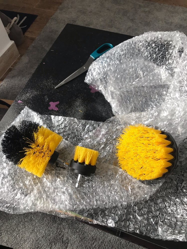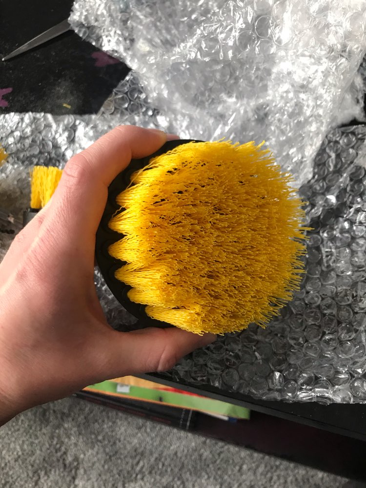 How have I lived without this? I used the heads to clean my shower and my cabinet doors in my kitchen. I am using different heads for different areas of the house. My kitchen cabinets are painted and I was scared that the power of the drill with the coarse brush would take off the paint but it only happened once. It was my fault. I pushed way too hard and the drill went on its side and the base of the brush went on the cabinet. Oops. I love these. You need to buy.