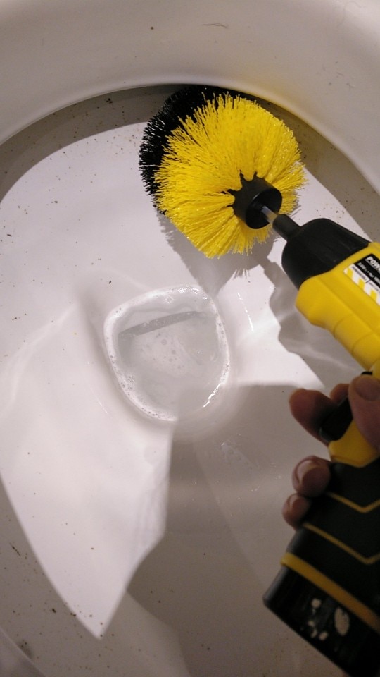 Cut my bathroom scrub time by half and works way better then just hand power! I’ve got a bad back so scrubbing for long periods is a no go. Let the cleaner soak or not the drill has enough power to scrub anything out for you.