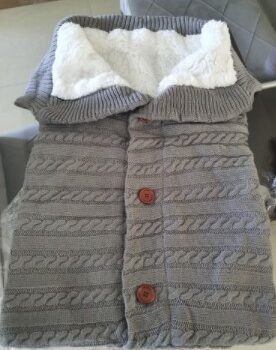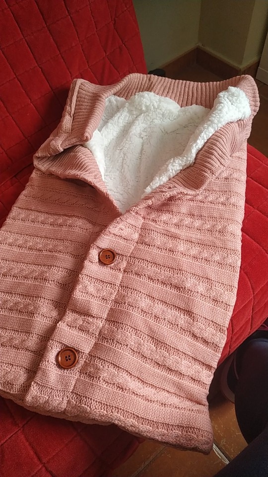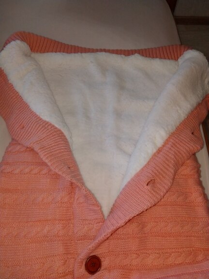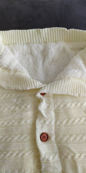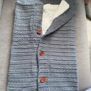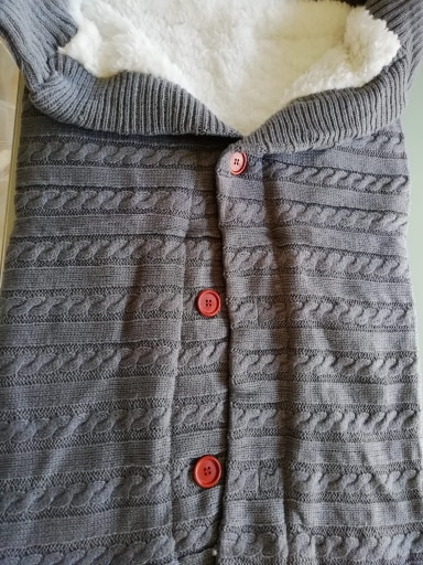 I was very impressed with the quality and style It is made of a soft high-quality knitting wool, fleece lined, which made it so soft and cuddly. It easily can keep a baby comfortable and warm. I love the cardigan sweater look with the buttons, and the full coverage sleeping swaddle blanket. It is for babies from 0 to 12 months, and can be used in all but the warmest seasons. I think this is such a nice good quality swaddle blanket and easily give it a 5-stars rating.