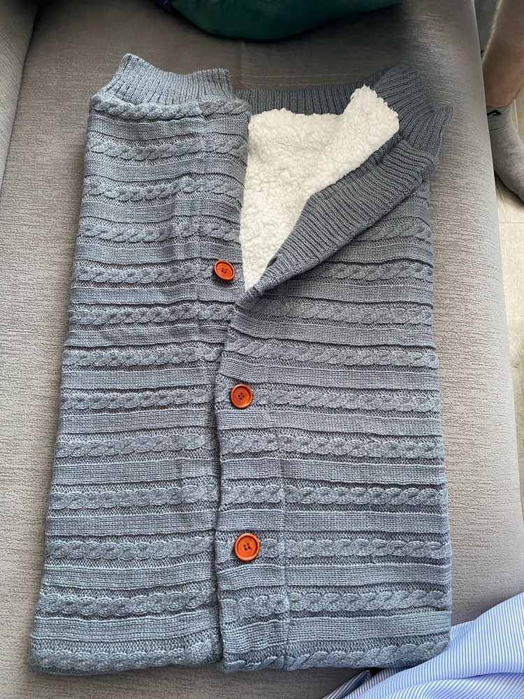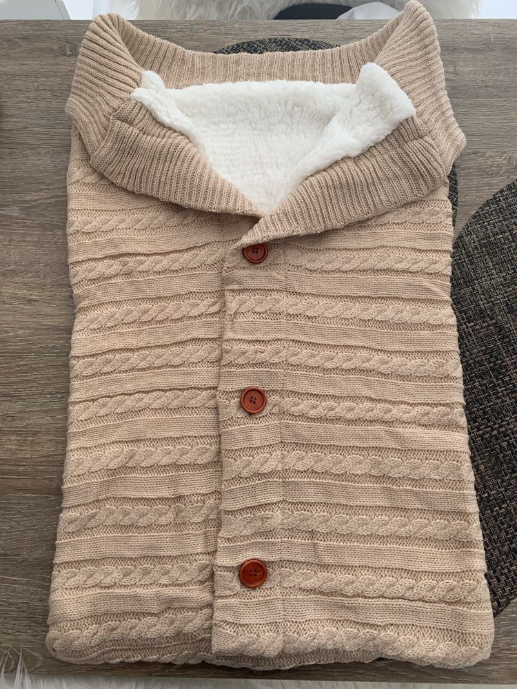 This is such a beautiful baby swaddle blanket with a very unique look and style. It's so soft and warm, I wish they made these in adult sizes! The big chunky buttons are a nice added touch!