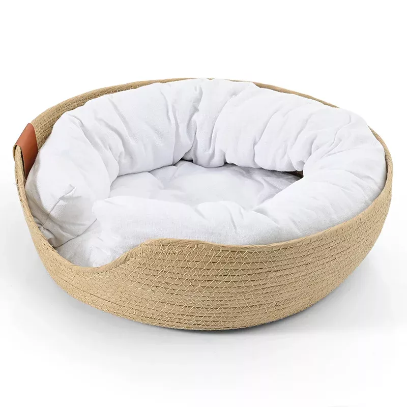 Crafted from pet-safe natural materials, this bed features a hand-woven paper rope exterior that’s not only stylish but also durable. Inside, you’ll find a breathable mesh fabric stuffed with plush PP cotton, ensuring your pet stays warm and comfortable year-round. The detachable circular pillow, covered in short plush fabric, adds an extra layer of softness, making this bed a true sanctuary for your pet.