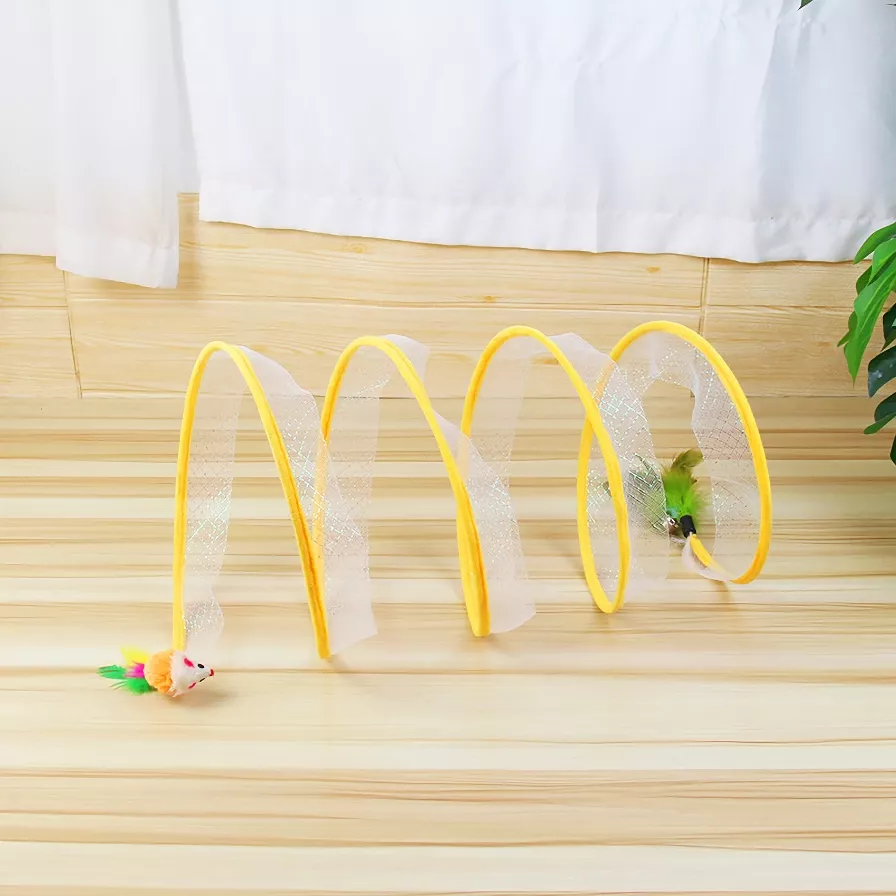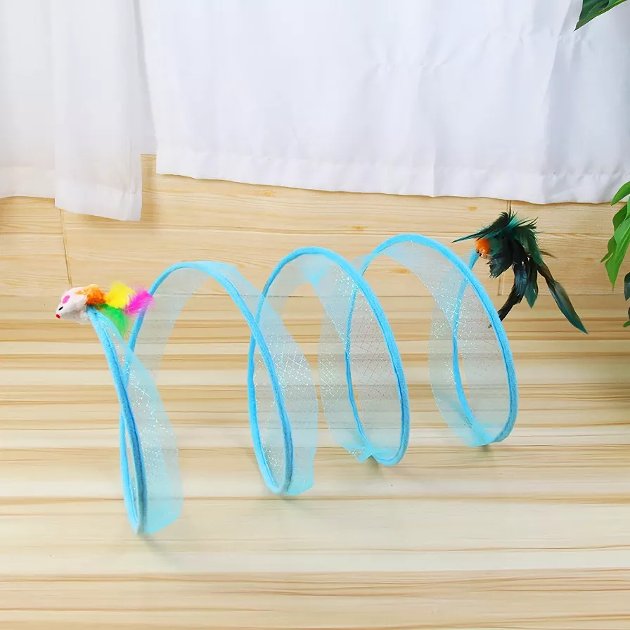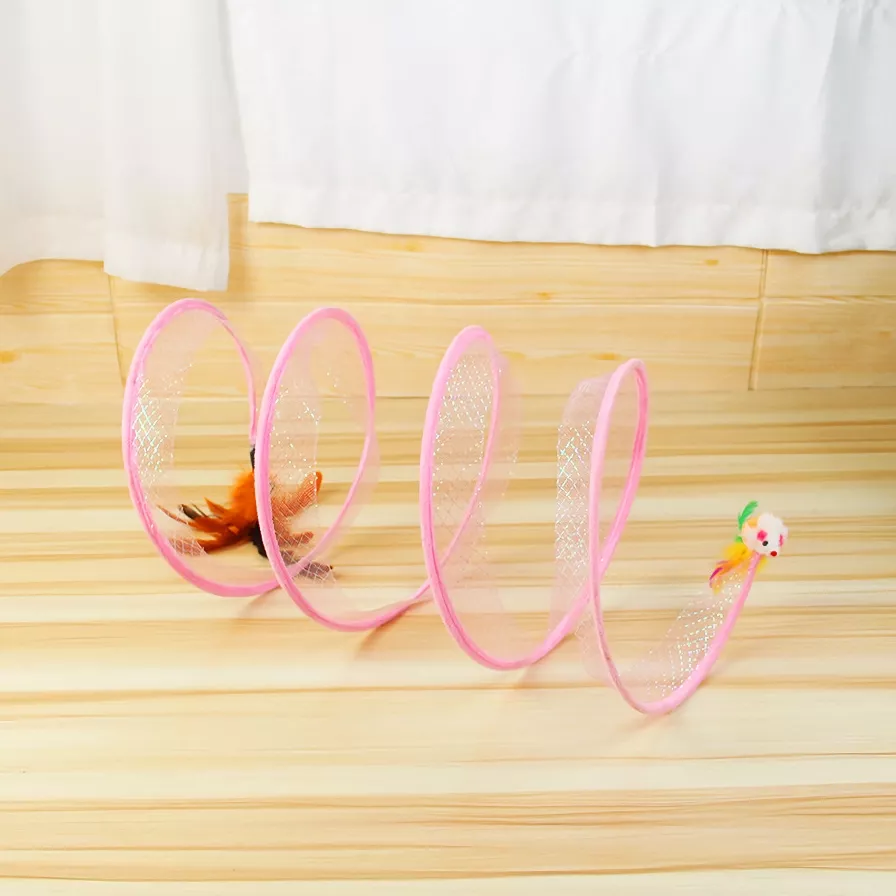 Interactive Foldable Cat Tunnel with Feather Toys and Mouse