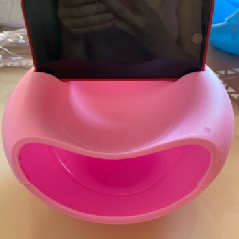 I got this mostly as a gag gift for my mother. She loves eating sunflower seeds while playing with her iPad. I was happy that her iPad mini fit because the pictures show a phone. Can’t really set it down when she has her iPad in it because it topples over but that doesn’t bother her. The only thing that really bothers me is that it was a little defective. The top piece and bottom doesn’t fit perfectly.