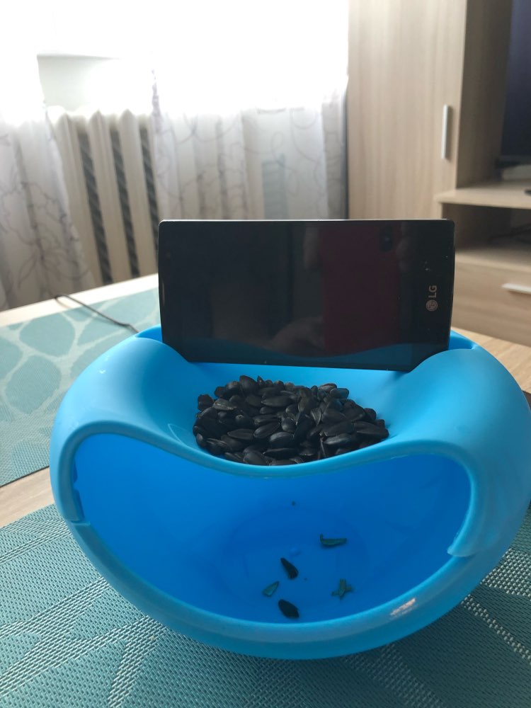 Its perfect for eating sunflower seeds which is why I got it for my mother who is a sunflower seed addict! The only thing that I didn’t like about it is that it is two levels that connect (the bowl in the bottom and the phone holder and smaller bowl in the top) did not like up and have a weird hanging edge that sticks out. Nevertheless it is still useful and a great gift which is why I’m giving it 5 stars!