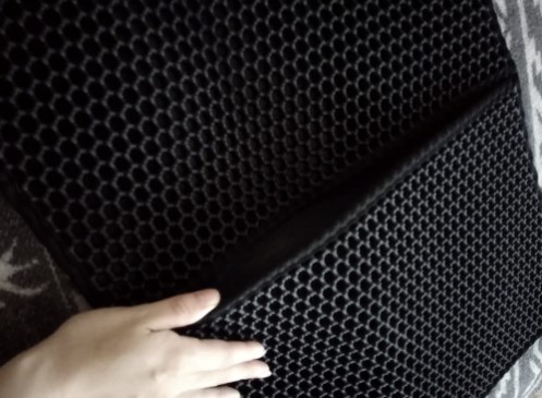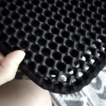 Our Leakage-Proof Cat Litter Mat features a bottom layer that can hold waste and urine without leakage or emitting odors. All you need to do is fill it with kitty litter. Mesh holes on the mat’s top layer allow for the flow of waste right into the bottom pocket, whose contents you can easily dump out. The mat (top and bottom layers) are also washable with water and cleaning soap for routine sanitization.