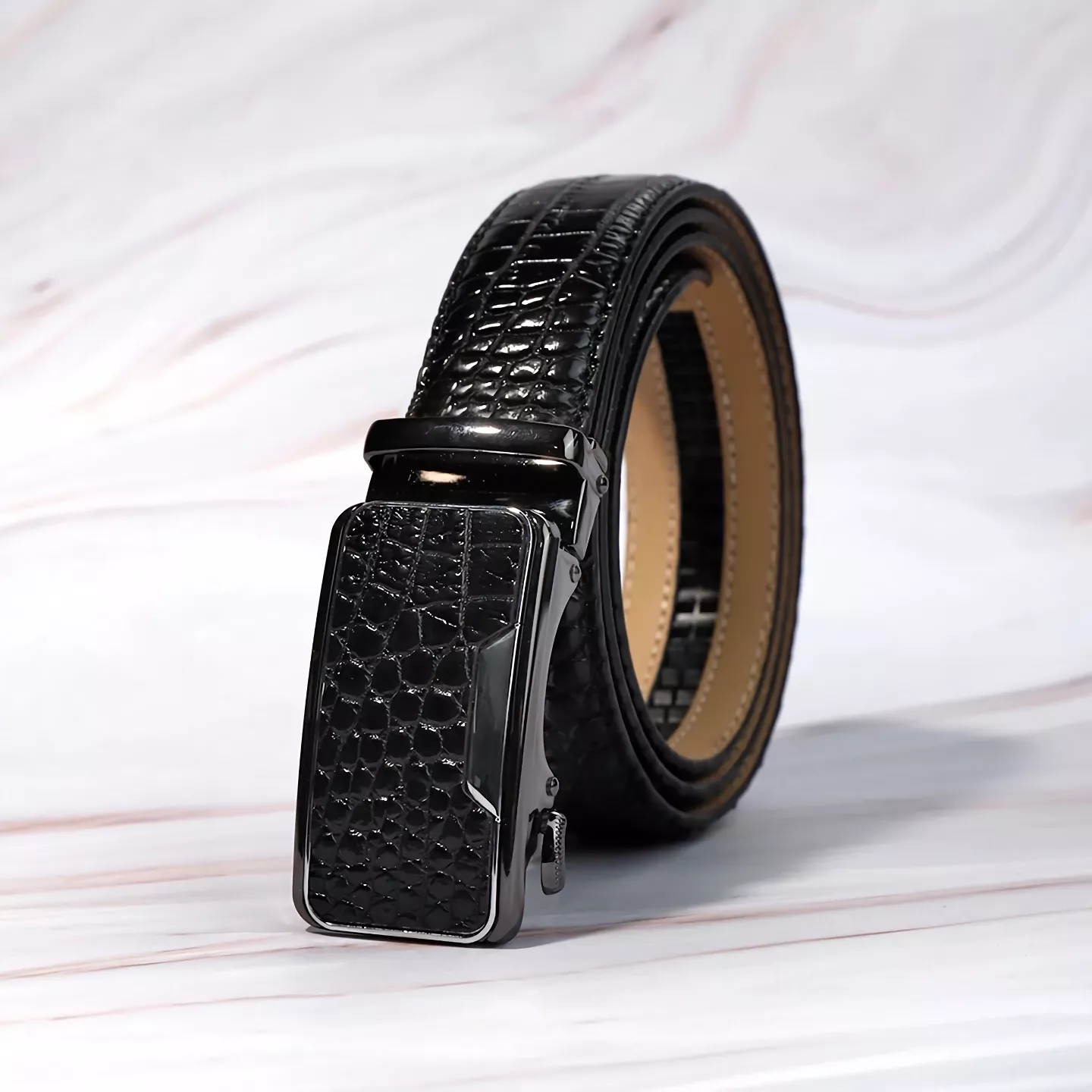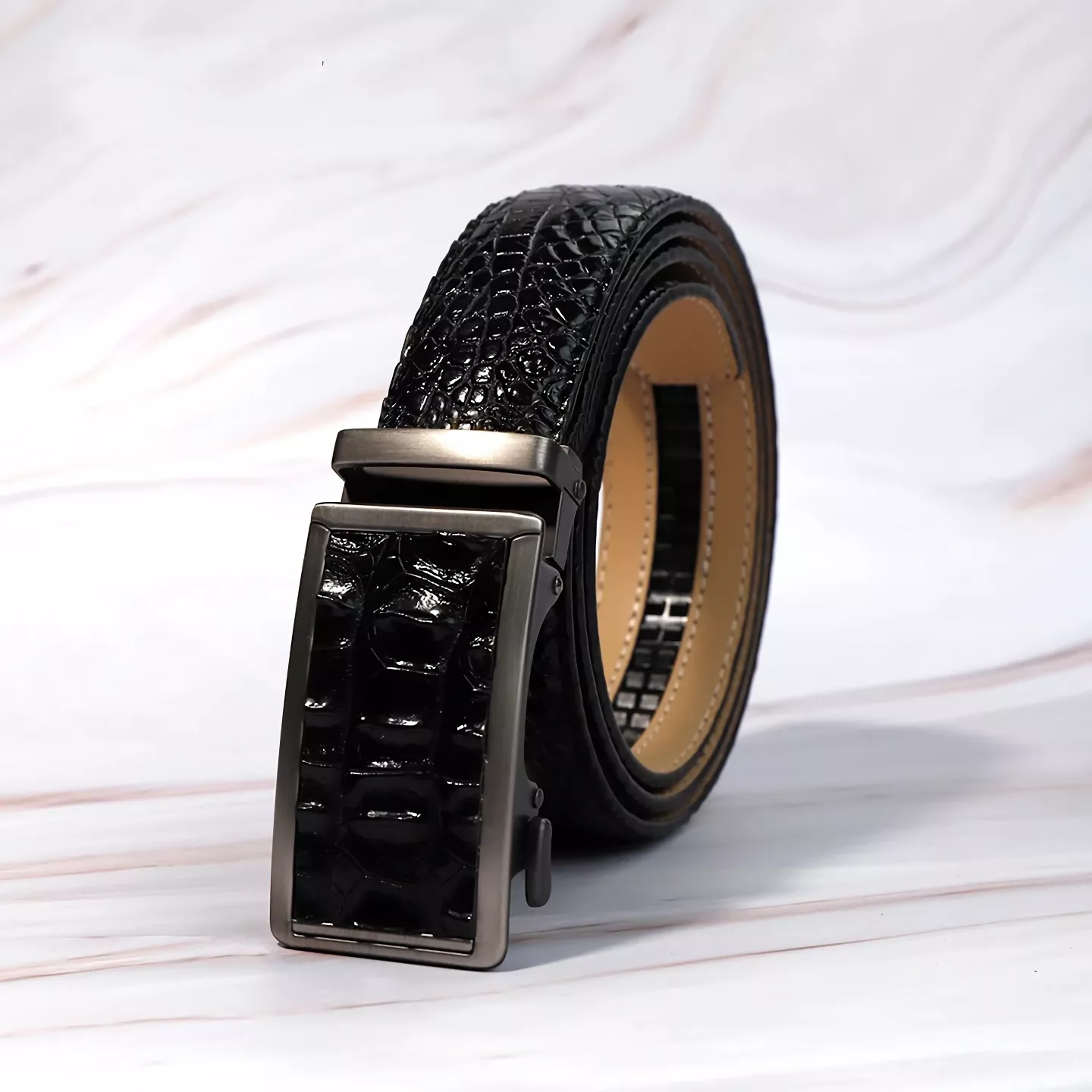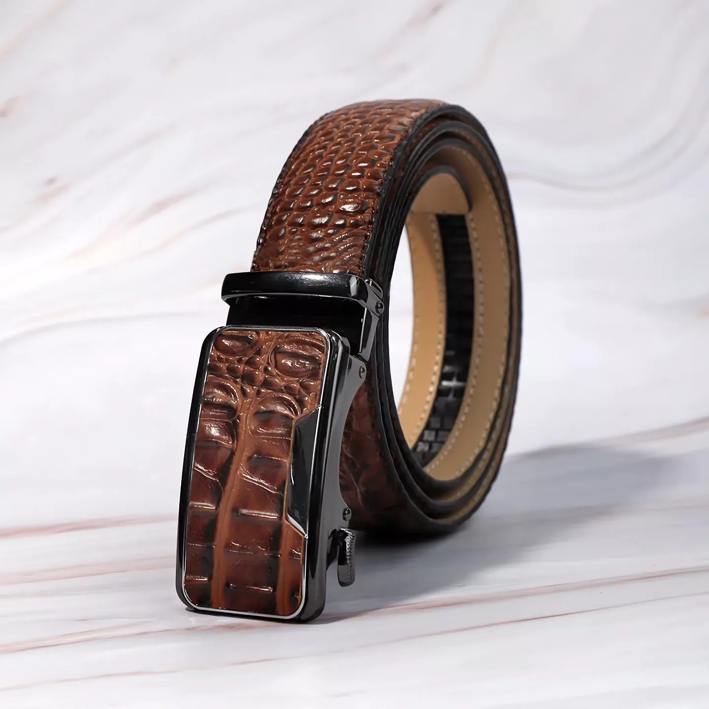 Luxury Men’s Leather Belt with Automatic Buckle – Crocodile Pattern