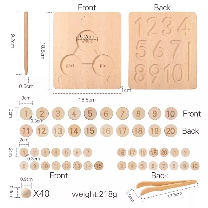 Introduce your child to the world of numbers and math in a fun and engaging way with the Montessori Wooden Math Learning Board. Designed with early childhood education in mind, this beautifully crafted beech wood board helps your little ones develop foundational math skills while fostering creativity and problem-solving abilities. Its smooth, natural wood surface makes it both durable and eco-friendly, offering an educational experience that’s not only enjoyable but safe for your child.