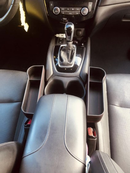 Our Multifunctional Car Seat Organizer fits into the space between your car seat and center console for an out-of-the-way storage accessory that also is conveniently within reach. Our Multifunctional Car Seat Organizer features a coin holder, curved spot to hold a tumbler or drink, and even built-in ports to facilitate flow of charger cables for devices. Plus, a luxe black, expert-crafted PU leather design (with visible red stitching detail) adds a stylish touch that blends into just about any car interior. Above all, our organizer is easy to install: just insert into the space between your seat and center console — no drills or attachment clips required. It’s a high-crafted solution to help tidy up your ride.