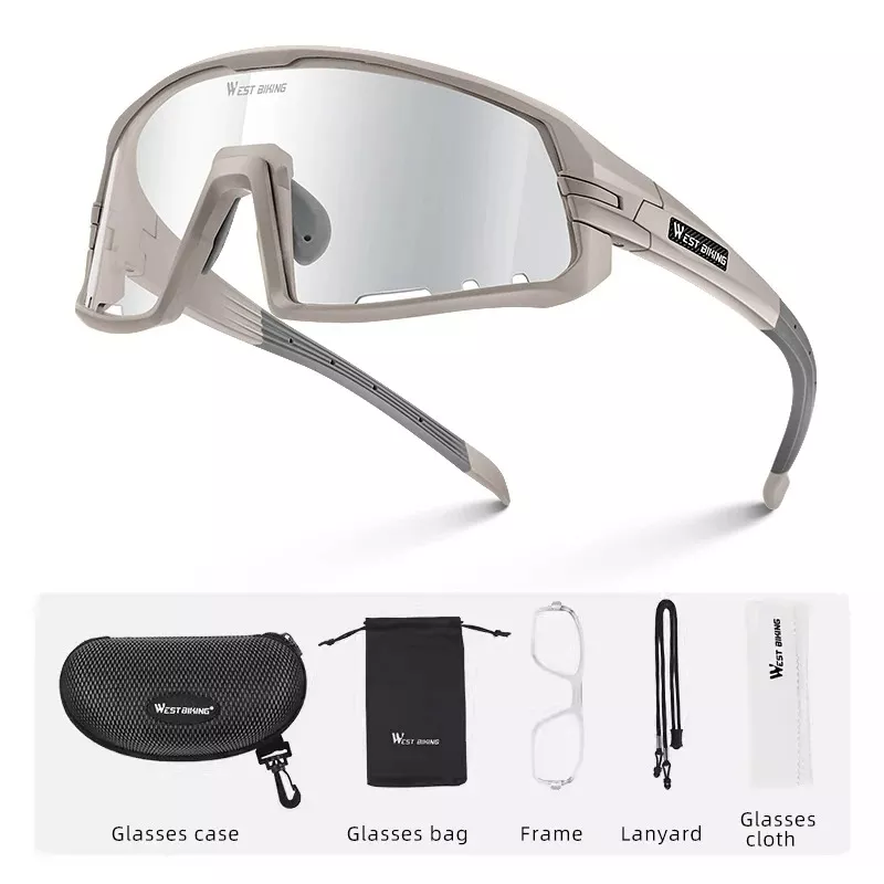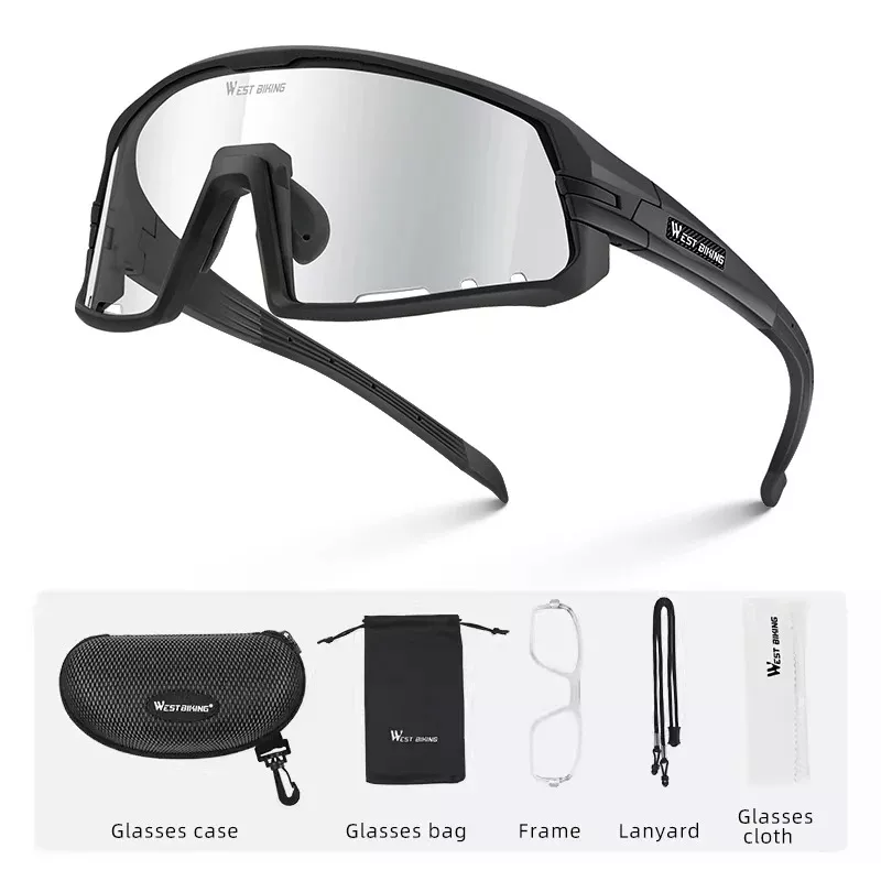 Our Photochromic Cycling Sunglasses are not just functional; they’re stylish and practical. The innovative lenses transition from dark to light depending on the intensity of sunlight, eliminating the need for multiple pairs of eyewear. Whether you’re racing on a sunny road or navigating a shaded forest path, these glasses keep your vision clear and your eyes safe. Plus, their lightweight design ensures maximum comfort, even during the longest rides.