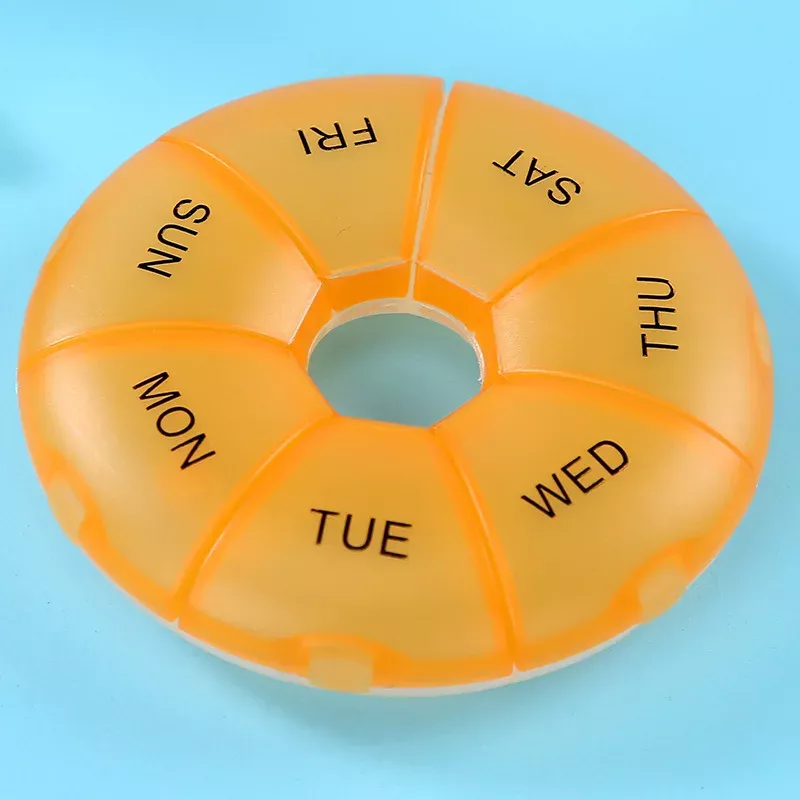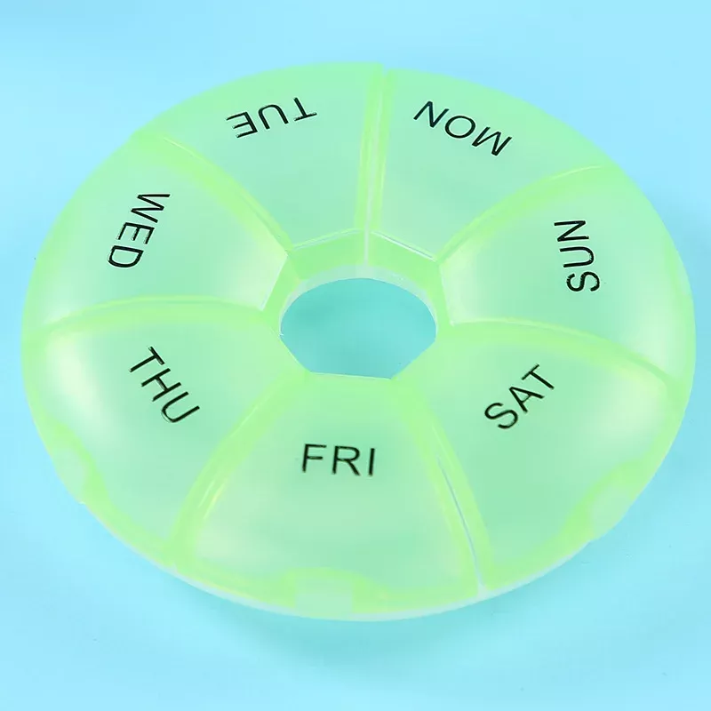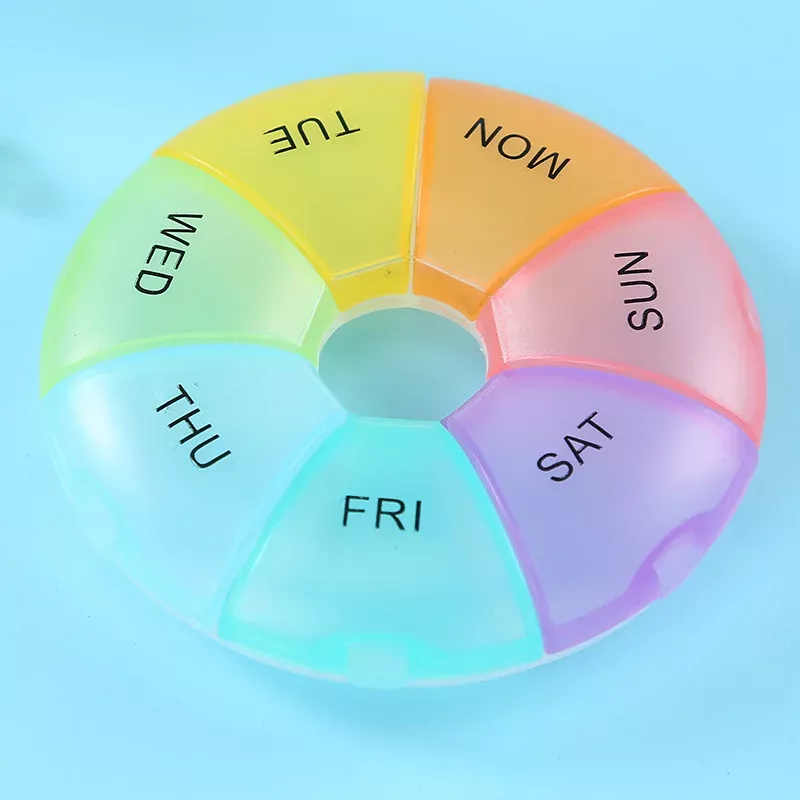 Portable 7-Day Round Pill Case – Compact Travel Organizer for Tablets