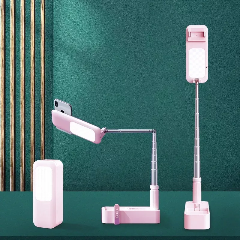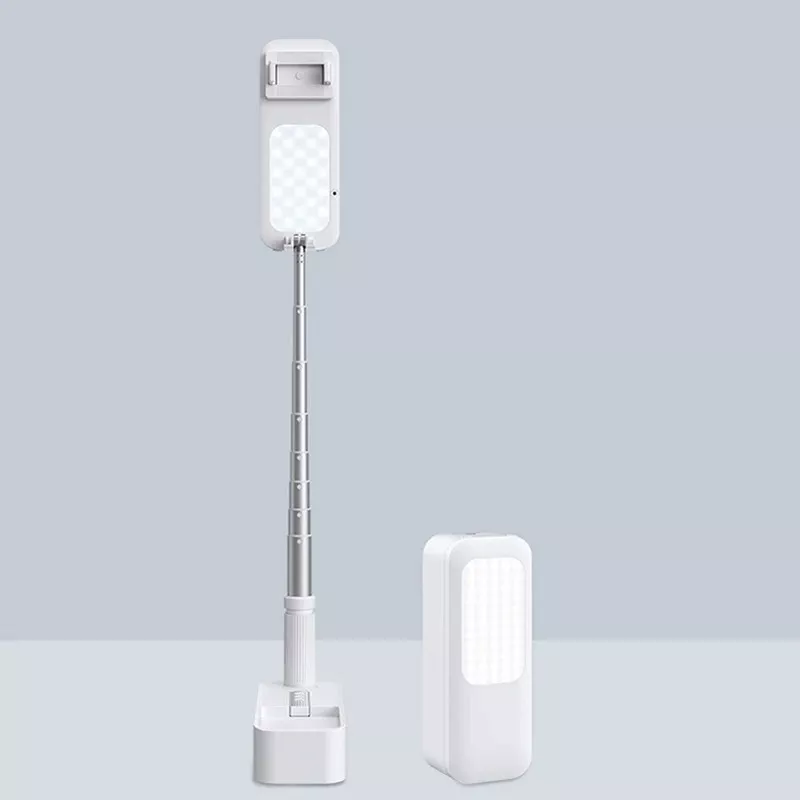 • Multi-Functional Design: Combines a phone holder, selfie stick, video shooting stand, and LED fill light in one compact device.