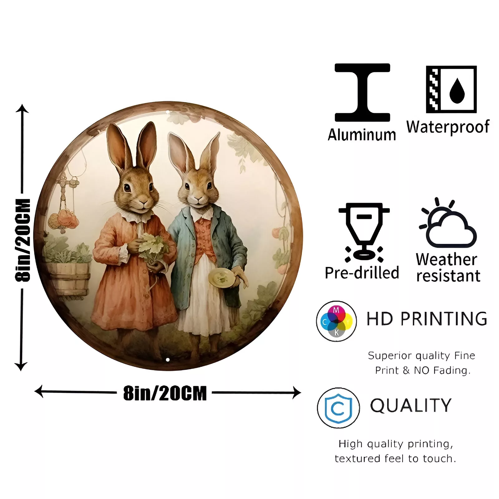 Rustic Bunny Couple Easter Metal Wall Sign – Vintage Decor for Home & Valentine’s Day