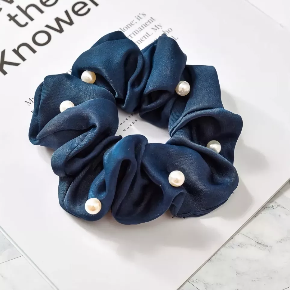 Satin Silk Pearl Hair Scrunchies – Stylish Elastic Hair Accessories