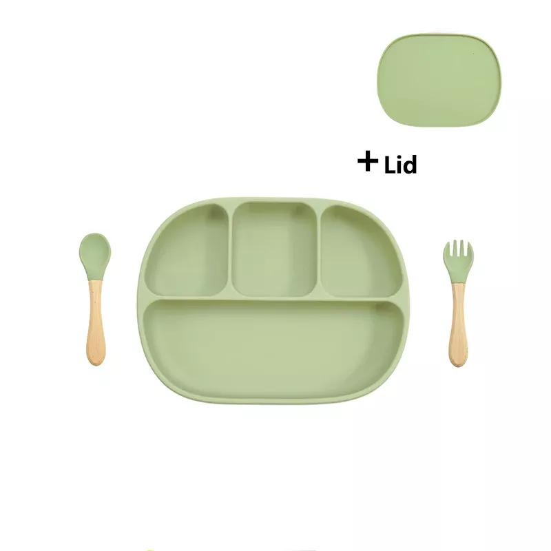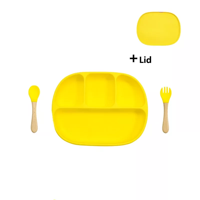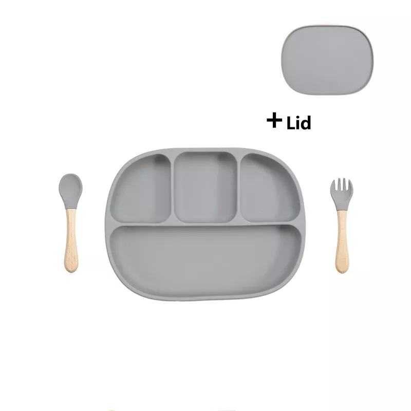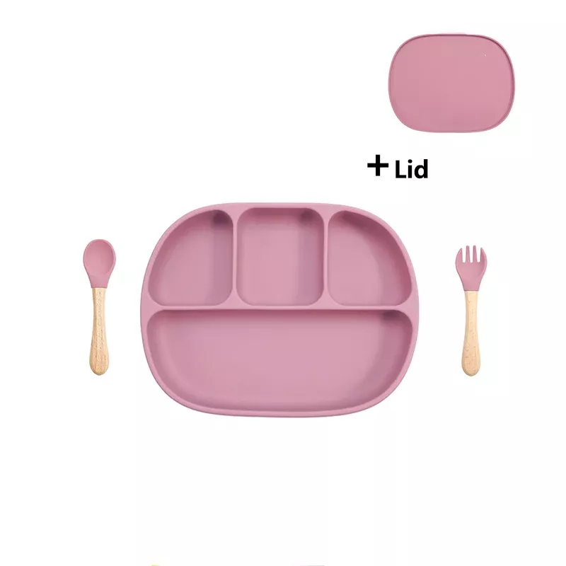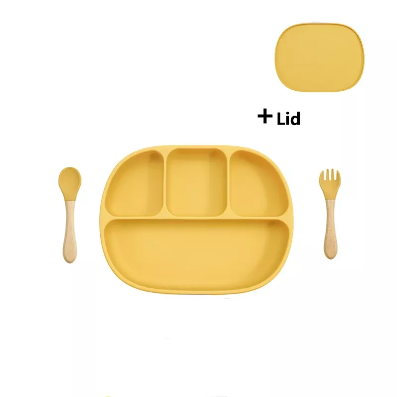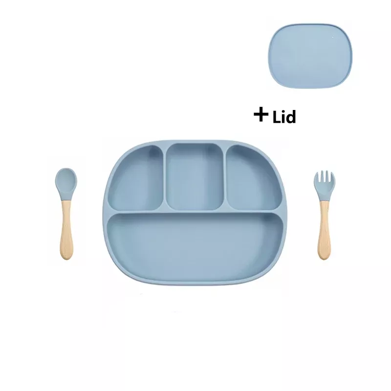 Silicone Baby Feeding Set with Suction Plate, Lid, and Spoon
