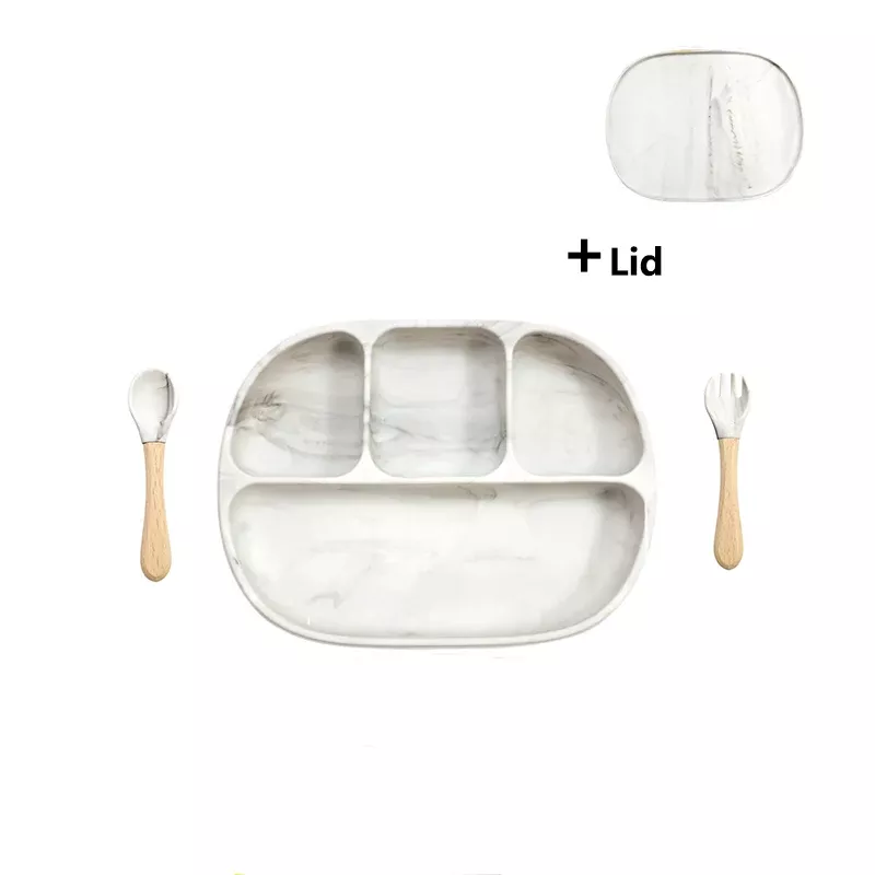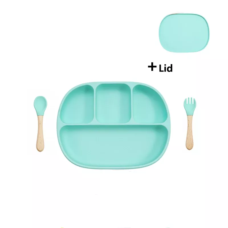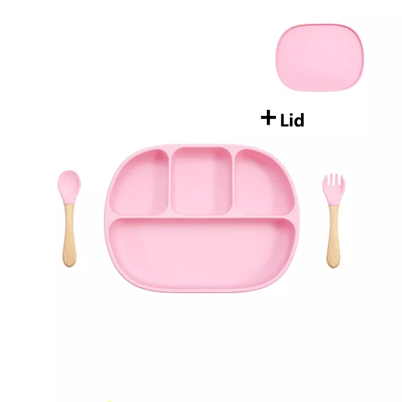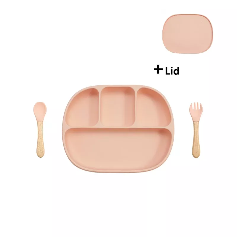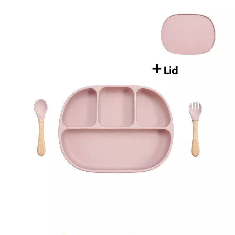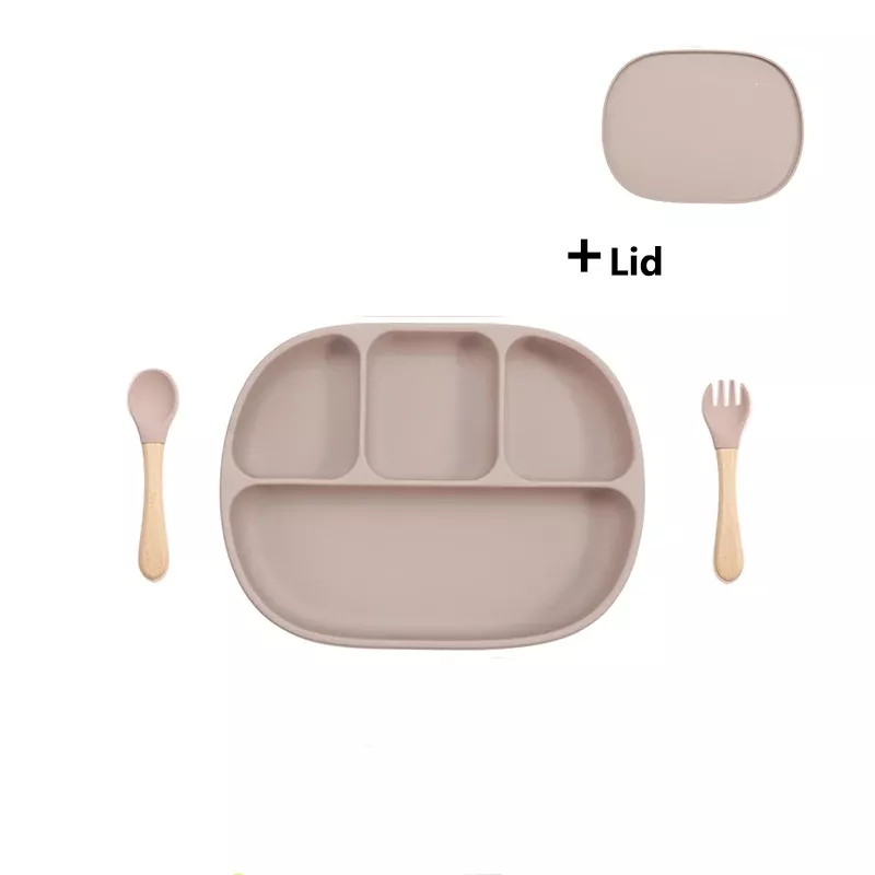 Silicone Baby Feeding Set with Suction Plate, Lid, and Spoon