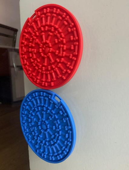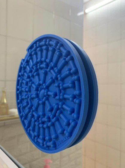 This dog lick mat is great for my dog's bath time. I just put peanut butter on it and stick it to the wall of the bath tub. It keeps my dogs entertained while I bathe them. They used to hate bath time but not when I use this mat.
