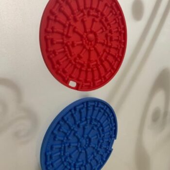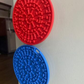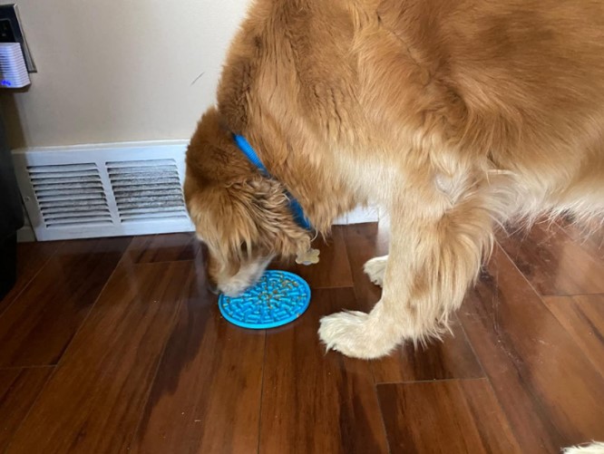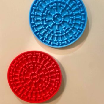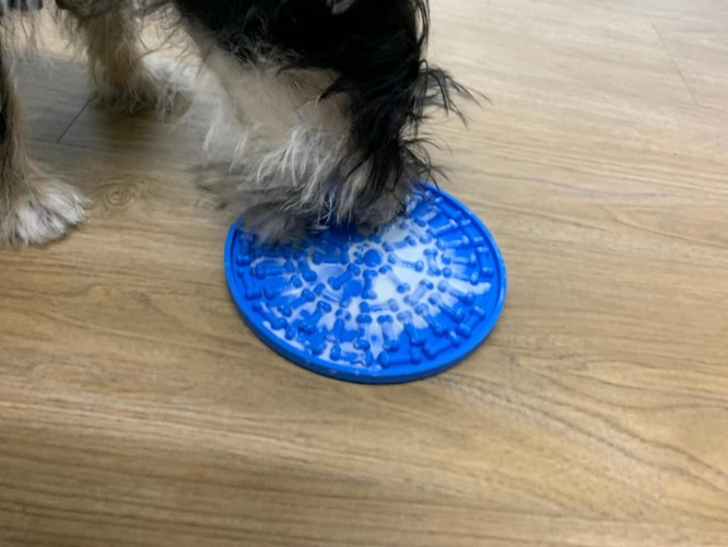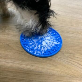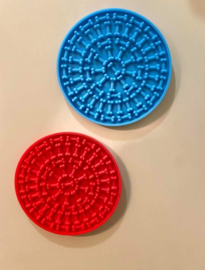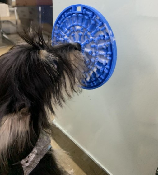 I just finished cutting and dremeling toenails on my three dogs with their total cooperation, thanks to this product. I just put squirt cheese in between the nubs of the slow treater, laid it on the grooming table, and the dogs were happily licking away while I worked on their feet. No pulling away, no second person to hold the dog, just me, some cheese, and the slow treater. I’m a fan!!!