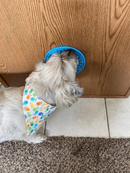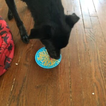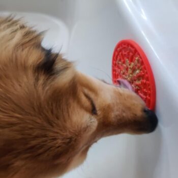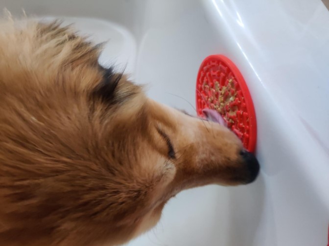 Bathing and grooming my five month old Alaskan malamute/husky has always been a bit of a struggle. The sight of the nail clippers, and grooming brush were enough to send her running. I can honestly say that the slow treater has been a total game changer when it comes to bath-time & grooming. It’s simply amazing how a single tablespoon of peanut butter spread into the slow treater can keep my pup so distracted that I’m able to fully wash, dry, brush, and clip her nails without her even noticing!!!