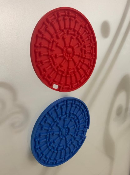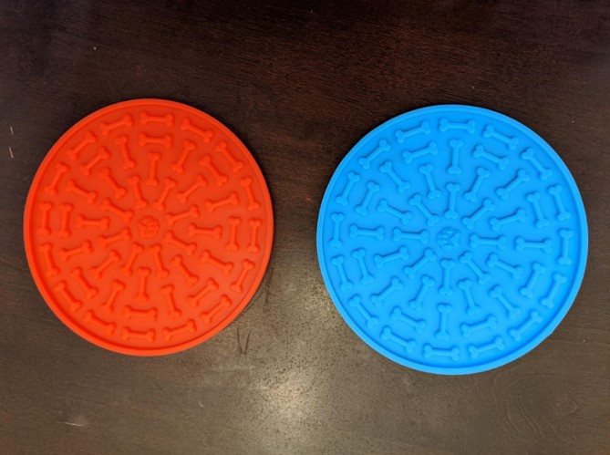 These are absolutely awesome!! I have 2 puppy who LOVE their peanut butter. This suctions right to the fridge and these keep them busy for a good 15-20 minutes (allowing me to catch up on a tad bit of housework haha!) Highly recommend!