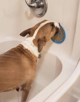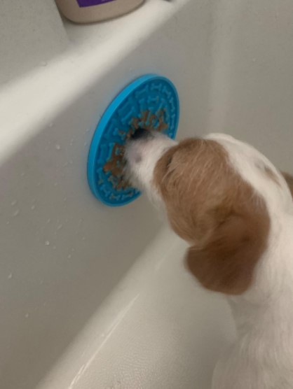 My chihuahua hates getting baths and before I bought this would bite the water and growl. But now that I use this, she’s occupied for the whole bath. Is she calm, no, but this thing isn’t a miracle. But it does the job! It has really good suction and doesn’t move around when I’m bathing her. Some people said it’s hard to clean but I haven’t experienced this. I put it in the sink and run hot water on it, then pop it in the dishwasher and it comes out clean.