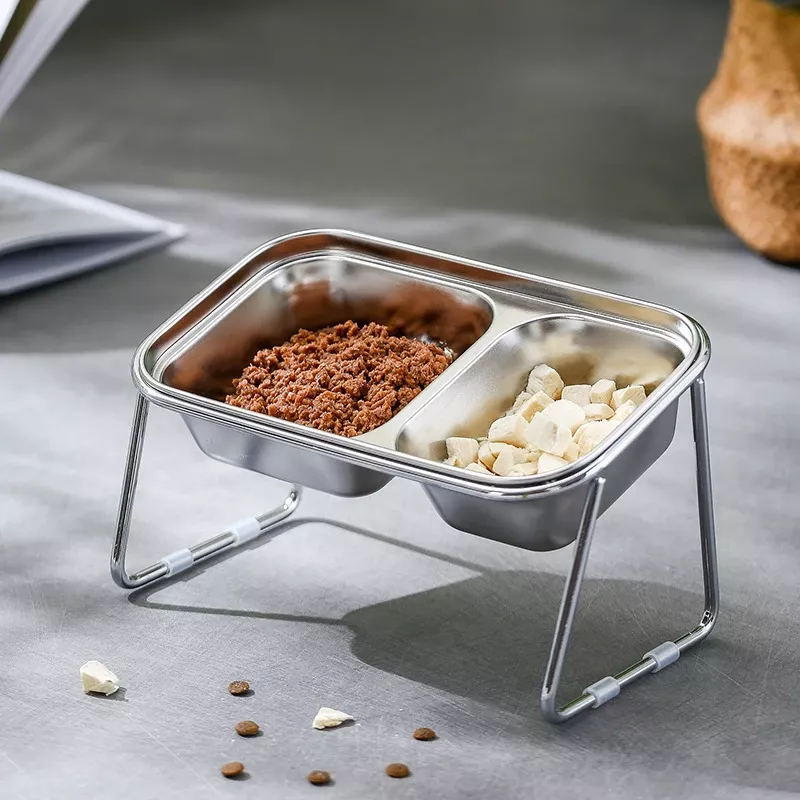 Stainless Steel Elevated Pet Food Bowl with Stand