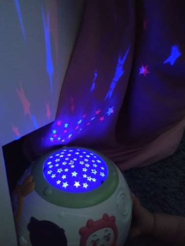 This is an uncomplicated night light projector that does as advertised. There are several options of color combinations and it's fun for toddlers to explore them. I do wish the dome had been made of a sturdier plastic as my toddler crinkled it immediately (but thankfully, it can be fixed and does return to its shape).