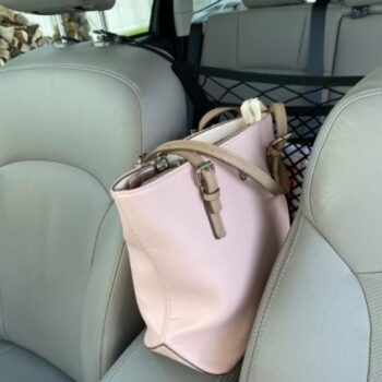 I attached this to the seats as instructed but found that things could fall behind the consol. This was remedied by weaving a ribbon through the mesh and around the hinge to my console. It's make a perfect perch for my purse! The mesh organizer had enough elasticity to push my purse into it and it stays without falling on the floor or getting in the way of me or any passengers! I can also get into my console if needs be! This has been just what I've needed for a long time!!