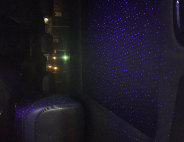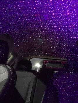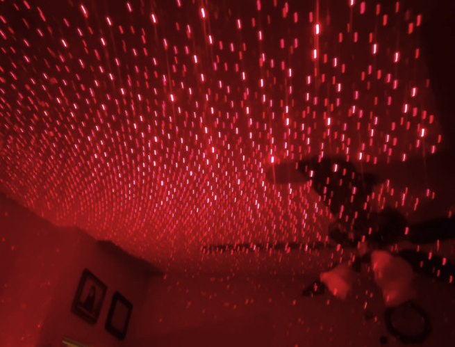 Our USB Ceiling Night Light comes in a choice of red or purple LED light. When turned on, you can turn the dial to change lighting effects and patterns, from stars to dots to constellation-like projections.