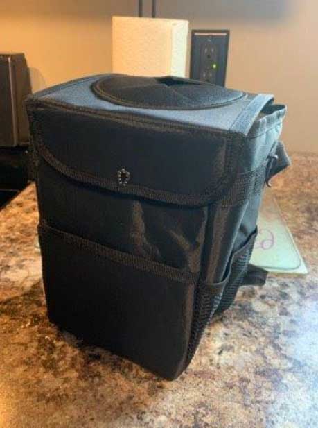 Not slinging over the front seat? No problem — our sturdy trash can also fits greatly on the car floor in the backseat or elsewhere in the trunk if you’re in a van with a number of occupants. When expanded, the bag measures 9.44 x 6.1 x 5.9 in (24 x 15.5 x 15 cm).