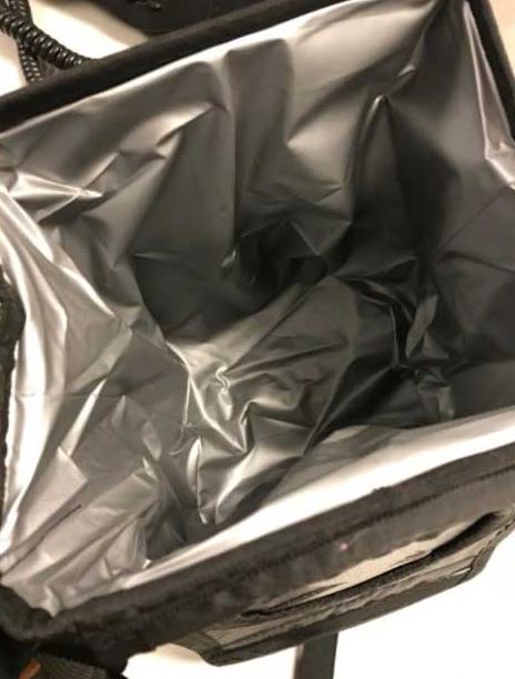 Whether half-finished drinks or napkins from a nasty spill, you can dispose with confidence knowing that the waterproof liner won’t drip or leak.